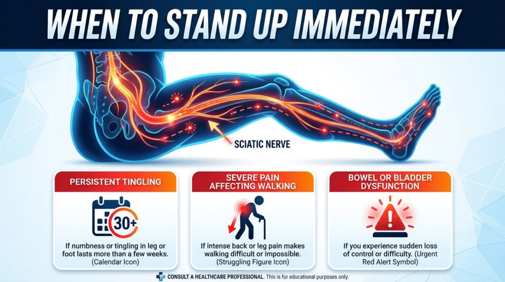 It’s essential to understand that feeling tingling in your leg doesn’t always mean something minor. Here are three scenarios where you must act promptly: